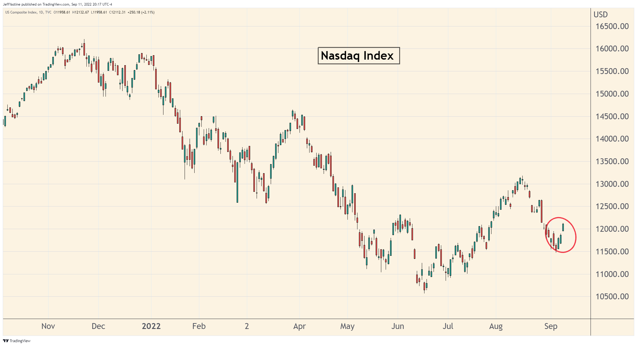 Yet when the market opened, every little dip during the session got "bought." Not just that, but lots of quality down-and-out stocks started getting bids and stayed that way through the rest of the session.