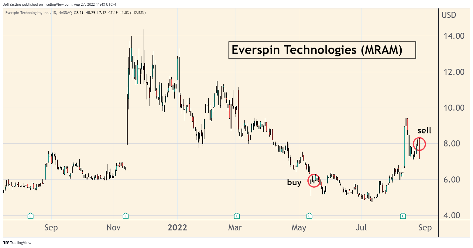 Getting back to MRAM, if the stock market were behaving better, or if the Federal Reserve were in the process of cutting rates instead of continuing to raise them - I'd lean towards continuing to hold the stock. My bet would be that MRAM's share price could work its way higher over time.
