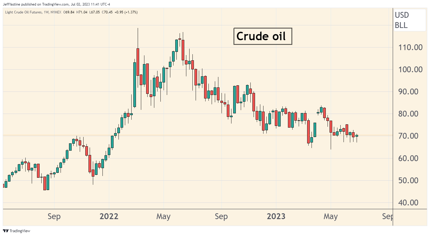 For example, if the economy's starting to take off, oil prices ought to be moving higher. Instead, oil is stuck at its lows of the year (around $70 a barrel) thus far, and looks like it could decline even further: