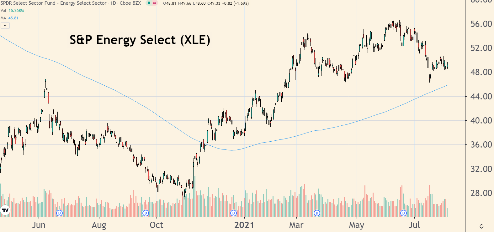 A rise in oil prices would push an ETF like the S&P Energy Select (XLE) nicely higher: